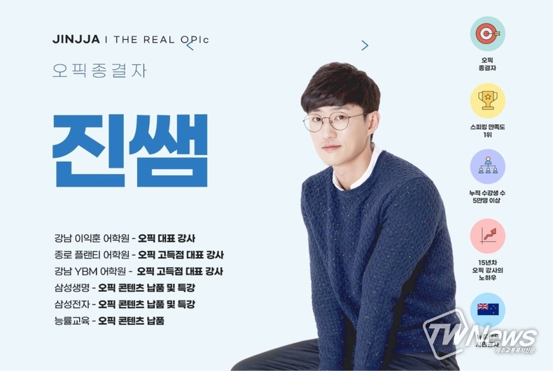 진짜녀석들 관계자는 “오픽 주관사와 함께 진행하게 될 오픽 라이브 특강을 통해 많은 학습자분들이 오픽에 대해 알아가고 정보도 얻고 서로 소통할 수 있는 좋은 컨텐츠라 생각한다”면서 "진쌤 또한 라이브 특강으로 많은 분들과 함께 할 수 있다는 것에 설렘과 기대가 크며 열심히 준비하겠다고 했다" 고 말했다.