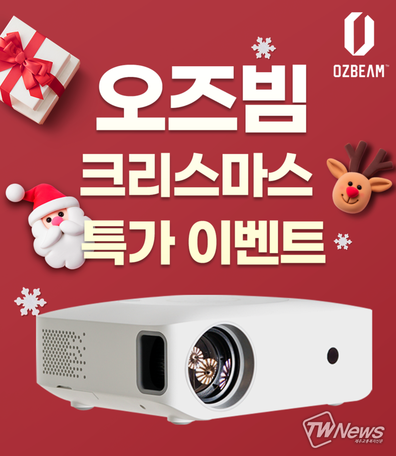 [제주교통복지신문 신혜정 기자] 스마트스토어 홈시네라이프가 ‘오즈빔’ 빔프로젝터 제품에 대하여 12월 크리스마스 특가 이벤트를 실시한다고 밝혔다.