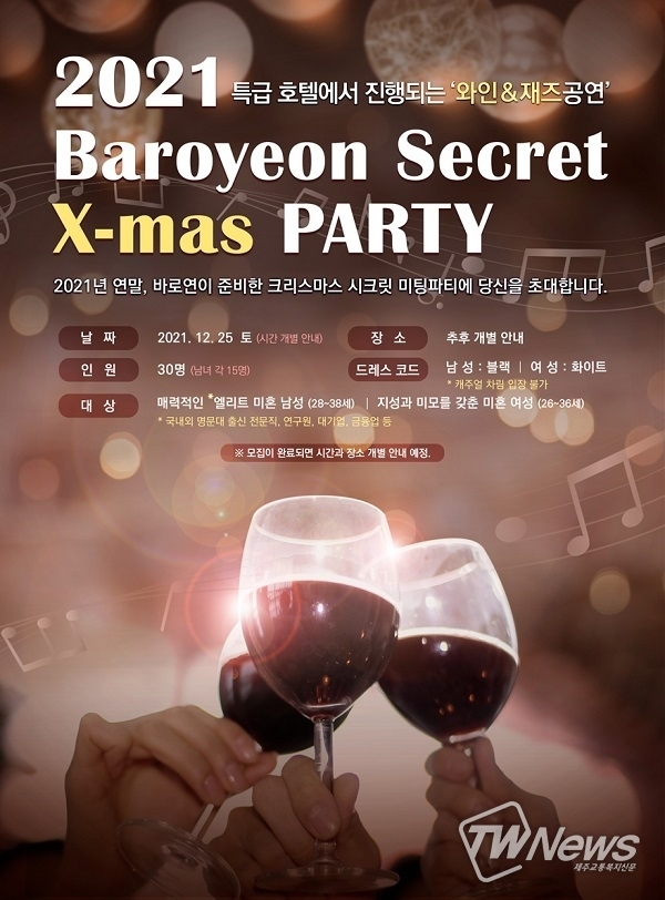 [제주교통복지신문 신혜정 기자] 결혼정보회사 바로연이 2021년 크리스마스 미팅파티를 개최한다고 밝혔다.