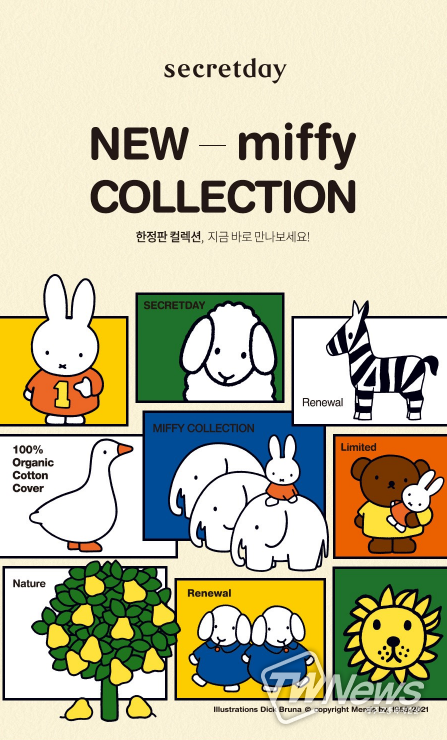 미피는 네덜란드 대표 캐릭터로 세계적으로 대중화돼 있는 캐릭터이다. 이번 시크릿데이는 오리진한 미피 캐릭터의 특징과 트렌드를 반영한 한정판 컬렉션 디자인을 통해 소장 욕구를 불러일으킨다. 시크릿데이는 앞으로도 다양한 컬렉션 디자인을 선보일 예정이라 밝혔다.