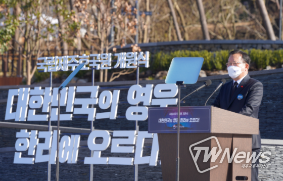 이와 함께 “국립제주호국원 개원은 제주지역의 모든 독립유공자와 국가유공자를 위해 나라가 마땅히 해야 하는 의무”라고 강조하며 “정부는 제주호국원을 국가유공자와 유가족은 물론 제주도민과 제주를 방문하는 모든 분들이 추모할 수 있는 품격 있는 공간이 되도록 하겠다”고 덧붙였다.