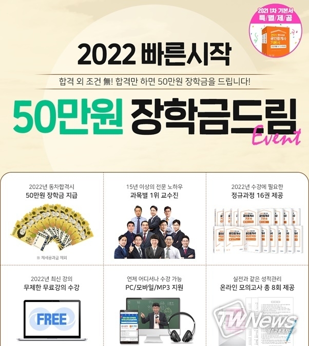 업체 측에 따르면 이번 이벤트는 2022 공인중개사 자격증 시험에 동차 합격하면 합격 장학금 50만 원을 지급한다.