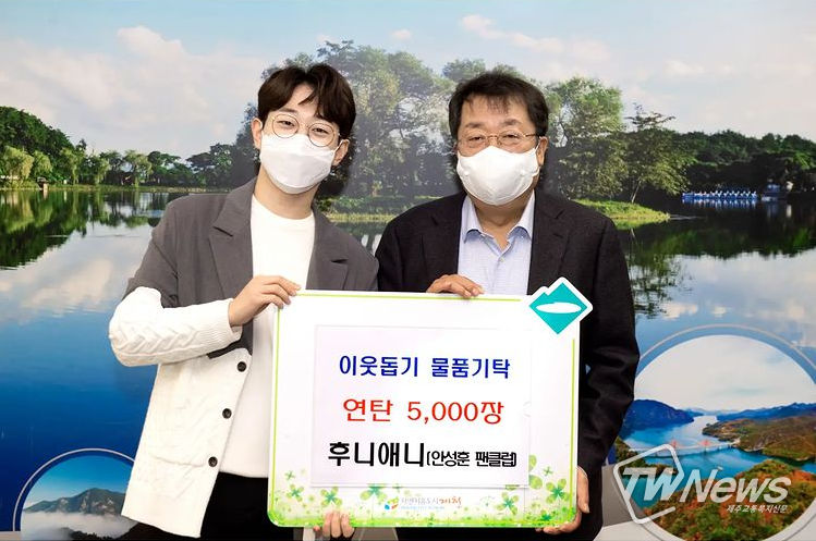 그는 “제가 졸업한 세명대학교가 있는 제천시에 저희 팬카페 후니애니와 함께 제천 시장님 뵙고, 연탄 5,000장 기부하고 왔다“라고 말하며 “제천시 파이팅, 세명대학교 파이팅, 후니애니 파이팅”이라고 덧붙였다.
