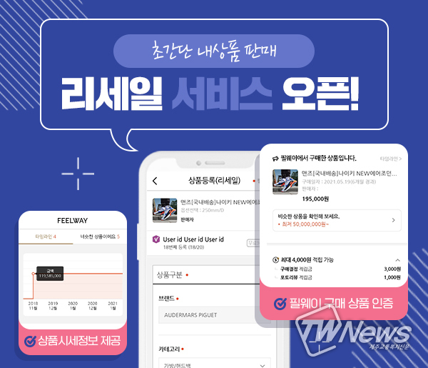 [제주교통복지신문 전희연 기자] 온∙오프라인을 중심으로 리세일이 점차 전문화되고 확장되는 가운데, 국내 명품 오픈마켓 필웨이가 자사 플랫폼에서 구입한 상품을 간편하게 거래할 수 있는 ‘리세일 서비스’를 오픈한다고 14일 밝혔다.