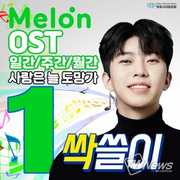 14일 멜론에 따르면 임영웅이 노래한 ‘사랑을 늘 도망가’는 OST 부문 일간·주간·월간차트에서 각각 정상을 차지했다.