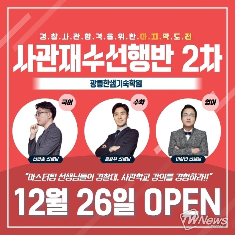 [제주교통복지신문 신혜정 기자] 광릉한샘기숙학원은 육해공 국간사 사관학교 진학을 희망하는 학생들을 대상으로 한 2022 윈터스쿨을 마감했으며, 12월 26일(일)에 개강하는 ‘사관학교 재수선행반’ 75명을 모집 중에 있다고 밝혔다.
