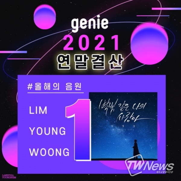15일 지니뮤직은 2021년을 마무리하는 의미를 담아 ‘2021 지니 연말결산’을 발표했다. 그 결과 ‘올해의 노래’ 1위로 꼽힌 곡은 임영웅의 ‘별빛 같은 나의 사랑아’였다.