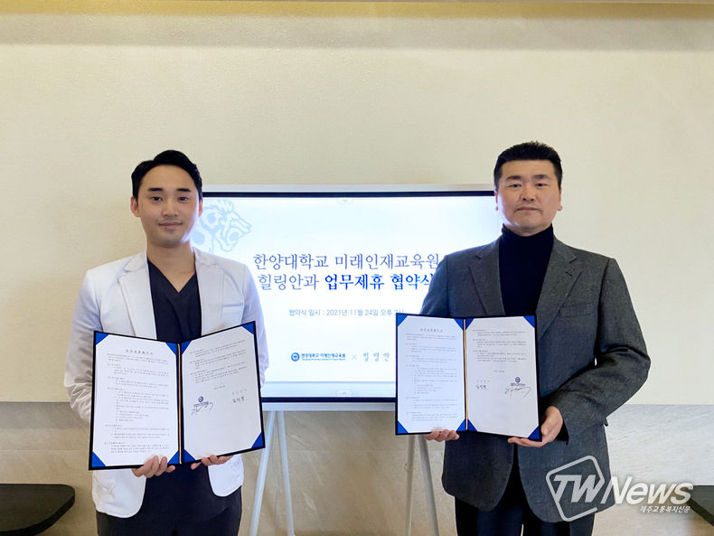 [제주교통복지신문 전희연 기자] 힐링안과(대표원장 김선영)와 한양대학교 미래인재교육원이 상호 협력과 발전을 위한 업무협약을 체결했다고 16일 밝혔다.