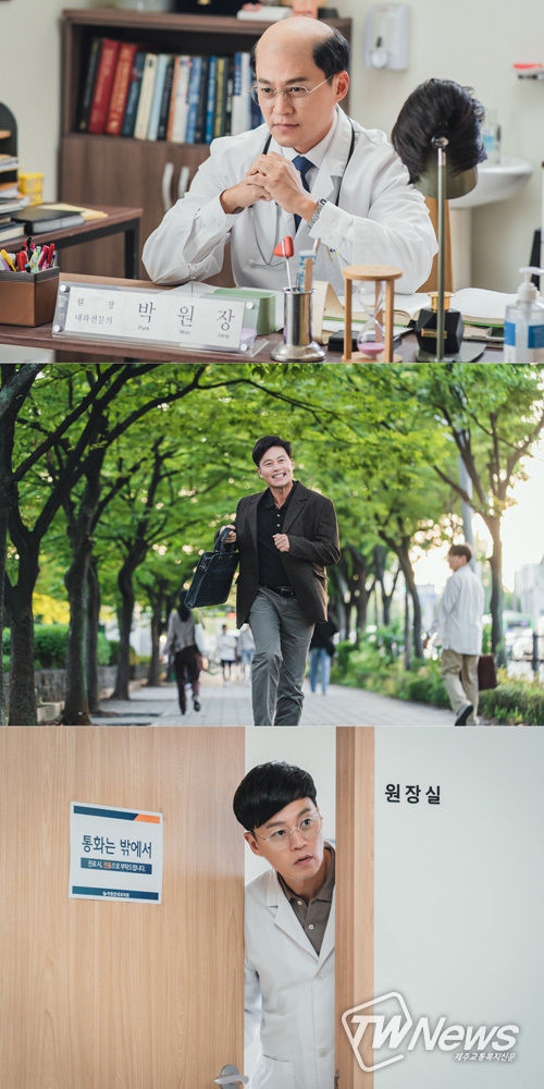 이날 공개된 사진에는 짠내마저 웃음으로 승화하는 박원장의 다이내믹한 모습이 담겼다. 마침내 갖게 된 ‘내 병원’의 안락한 원장실에서 새 인생을 시작한 박원장. 빛나는 민머리만큼이나 반짝이는 눈빛에서 성공에 대한 다부진 결의가 느껴진다. 여기에 책상 조명에 걸려있는 그의 가발은 한순간 폭소를 유발한다. 누구에게도 말할 수 없는 그의 은밀한(?) 비밀이 어떤 에피소드를 만들어낼지 궁금해진다.