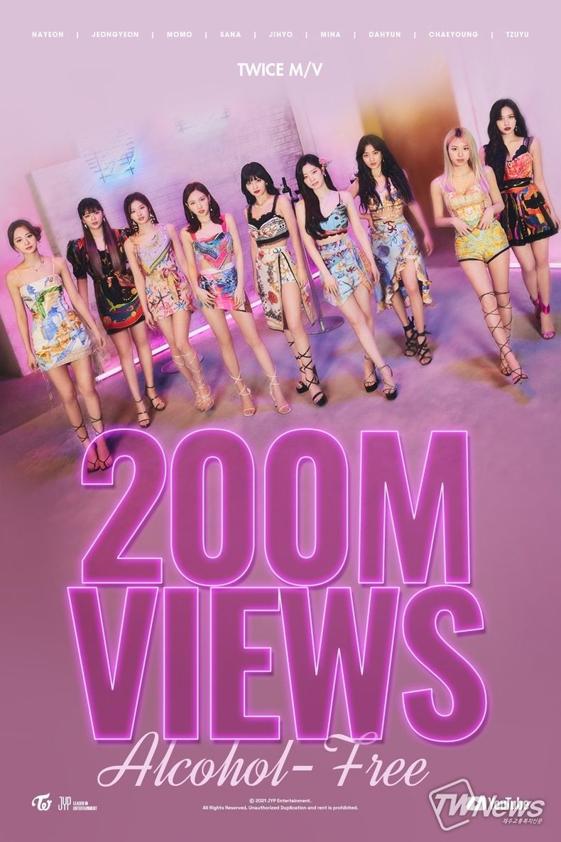 16일 트와이스의 공식 SNS에는 “트와이스의 ‘Alcohol-Free’ 뮤직비디오가 2억 뷰를 달성했다”라는 소식이 올라왔다.