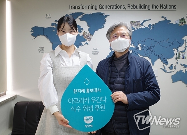 한지혜는 "8년 전 팀앤팀을 만나 인연을 맺고 지금껏 소소하게 도움드릴 일을 하다보니 시간이 훌쩍 지났다" , "이번에 작은 나눔으로 마음을 보태게 됐는데, 오히려 밝고 건강한 직원분들 덕분에 기운을 많이 받고 왔다"며 "필수 생존수단인 식수의 부족으로 어려움을 겪고 있는 분들께 도움이 되길 바란다”고 전했다.