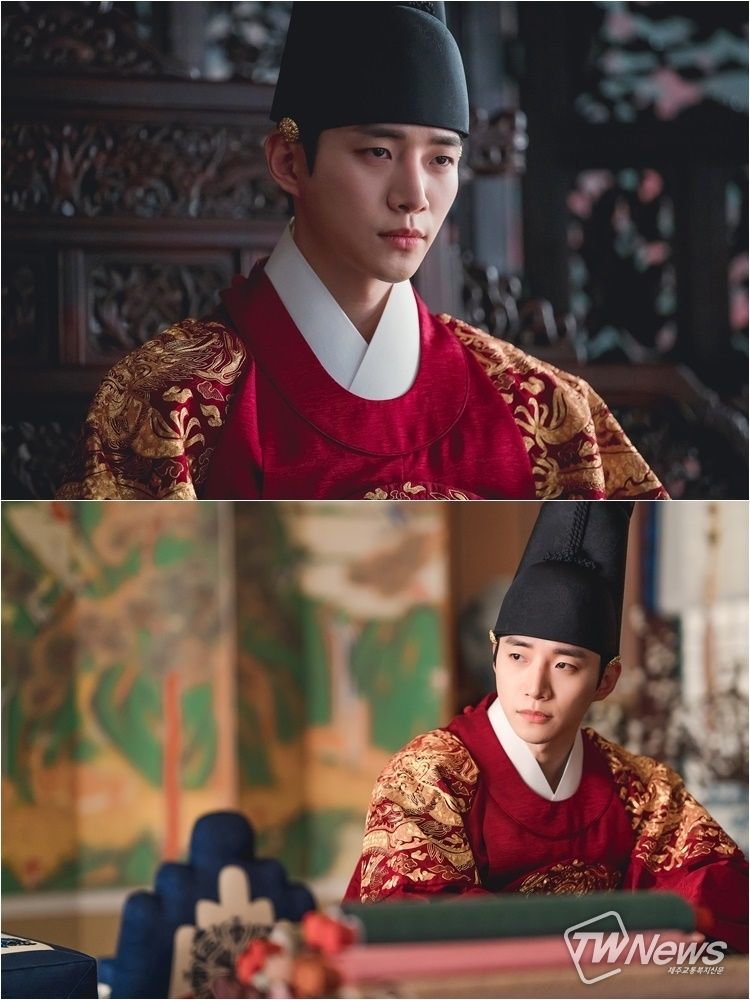 공개된 스틸 속 이산은 왕세손의 상징인 아청색 곤룡포를 벗고, 왕의 상징인 붉은색 곤룡포를 차려 입고 있어 시선을 강탈한다. 더욱이 그는 근엄한 자태로 어좌에 앉아있는 모습. 수려하고도 반듯한 용안과 건장한 자태, 냉철하고도 카리스마 넘치는 눈빛, 군주의 품격이 느껴지는 맵시가 절묘하게 어우러진 ‘젊은 왕’의 비주얼이 여심을 두근거리게 만든다. 더욱이 풋풋한 소년미가 느껴지던 왕세손 시절과 달리 한층 깊어진 눈빛과 남성미가 돋보인다. 이에 일국의 제왕이자 한층 매력을 더한 남자가 된 이산이 성덕임(이세영 분)과 펼쳐나갈 로맨스에 기대감이 수직 상승한다.