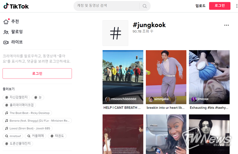[제주교통복지신문 김현 기자] 그룹 방탄소년단의 정국이 틱톡 해시태그를 통해 막강한 인기를 자랑했다.