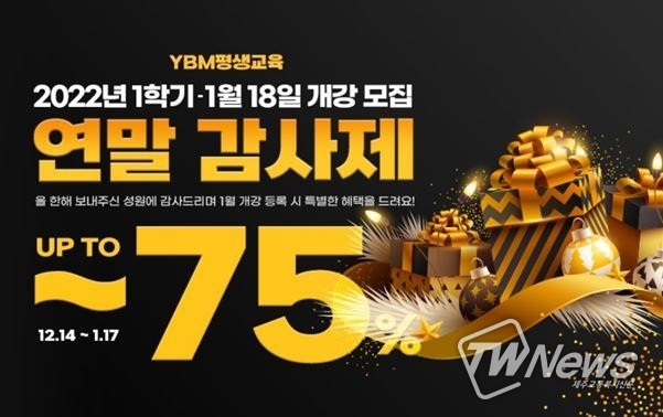 [제주교통복지신문 신혜정 기자] 교육부 인증 학점은행제 원격교육 훈련기관인 YBM넷 원격평생교육원이 2022년 1월 18일 개강하는 학위과정과 자격증과정 수강생을 모집하고, 연말 감사제 이벤트를 진행한다고 21일 밝혔다.