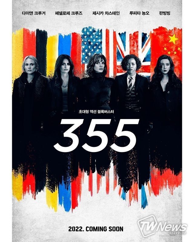 영화 ‘355’는 글로벌 범죄조직에 의해 전 세계 국가 시스템을 초토화할 일급 기밀 무기를 도난당하는 사건이 발생하자, CIA 요원 ‘메이슨’(제시카 차스테인 분)이 전 세계 최정예 블랙 에이전트를 모아 TEAM ‘355’를 결성, 비공식 합동작전에 돌입하는 내용을 담는다.