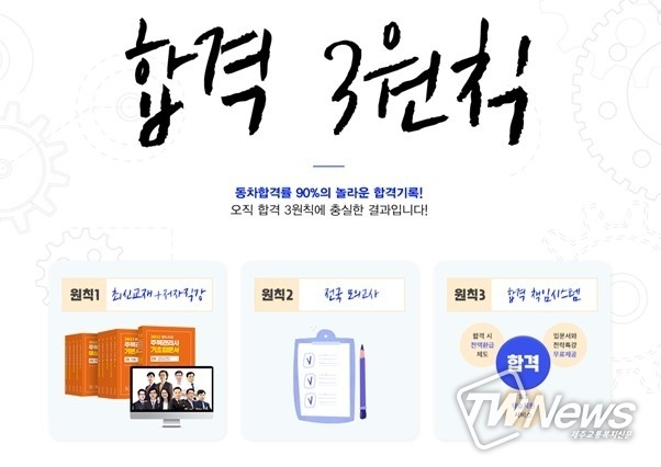 업체 측에 따르면 주택관리사 시험일정 대비 합격 3원칙에는 ▲최신교재+저자직강 ▲전국 모의고사 ▲합격 책임 시스템이 포함됐다.