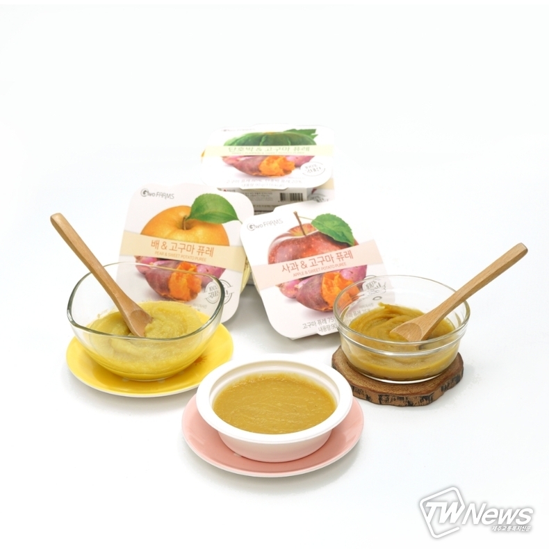 [제주교통복지신문 신혜정 기자] (주) 가보팜스가 단호박고구마 퓨레에 이어 신제품으로 고구마속에 과일을 담은 사과 고구마퓨레, 배 고구마퓨레 2종을 출시했다고 밝혔다.