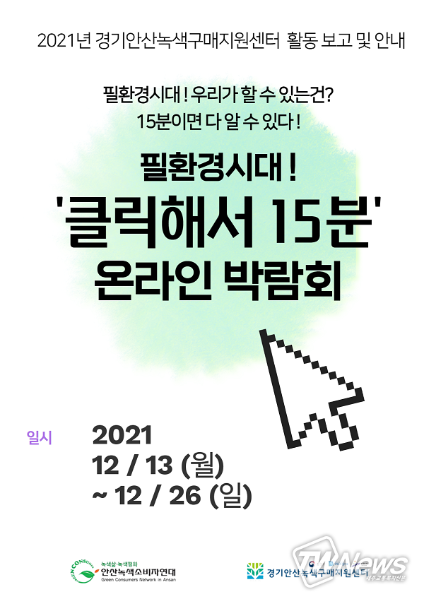 경기안산녹색구매지원센터는 해당 온라인 박람회에서 필환경시대 소비자들에게 온라인 박람회라는 형태로 환경을 위해 지킬 수 있는 활동 및 사업 등을 홍보했고 클릭해서 15분이라는 온라인박람회로 새로운 시도로 도전했다.