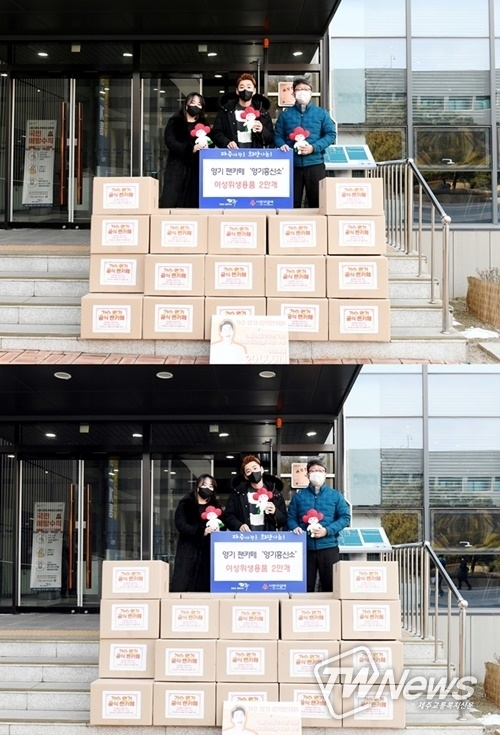 작년에 이어 올해에도 2년째 코로나19로 위축되고 힘든 상황에 놓인 여성 청소년들을 돕고자 2만 개의 생리대를 파주 시청 복지정책과에 직접 전달했다.