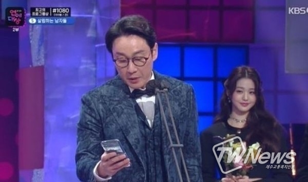 또한 이휘재는 자신의 수상 소감을 말할 때에도 휴대폰에서 눈을 떼지 않았다.