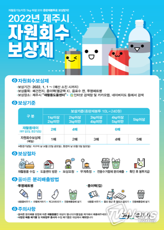 [제주교통복지신문 김현석 기자] 제주시에서는 ‘재활용 데이’를 2022년부터 매주 일요일로 변경 운영한다고 밝혔다.