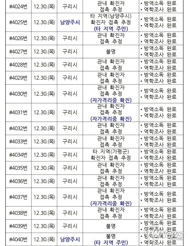 30일 구리시에 따르면 신규 확진자는 37명이다.