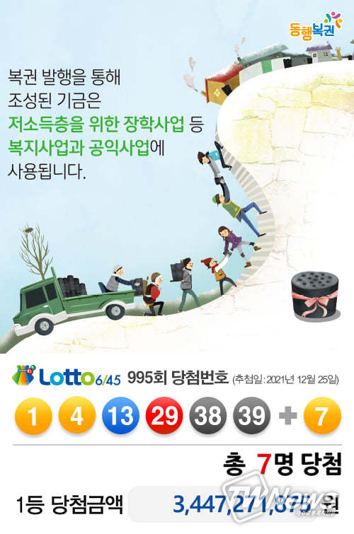 지난주 995회 로또 1등당첨번호조회는 " 29, 13, 4, 39, 1, 38 "이다. 2등 보너스번호는 " 7 "이다.