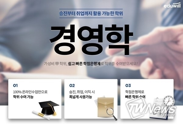 [제주교통복지신문 김지홍 기자] 종합교육기업 에듀윌(대표 이중현)은 실속을 동시에 챙기며 경영학·CPA 학위를 취득할 수 있도록 '온라인 학점은행제'를 통해 개인 맞춤형 강의 서비스를 제공한다고 1일 밝혔다.
