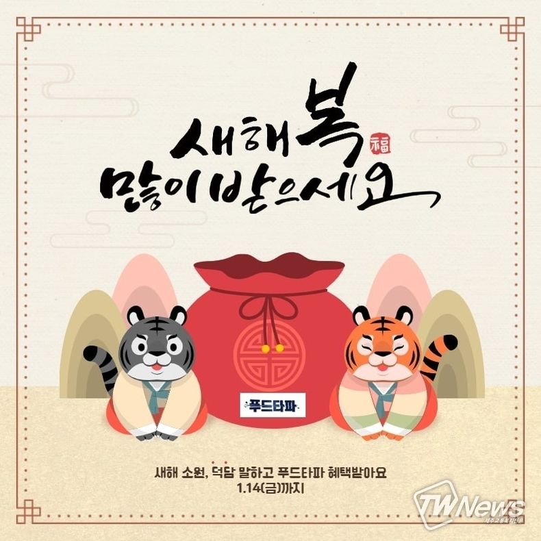이어 “인스타그램을 접하기 어려운 고객분들을 위해 소원, 덕담을 인스타그램에 업로드하지 않아도 검은호랑이 임인년을 맞아 검은호랑이로 5행시를 작성하여 푸드타파 인증게시판에 올릴 경우 동일한 혜택을 받을 수 있도록 조치했다” 라며 “금번 이벤트에 대한 많은 관심과 성원을 부탁드린다” 라고 말을 맺었다.