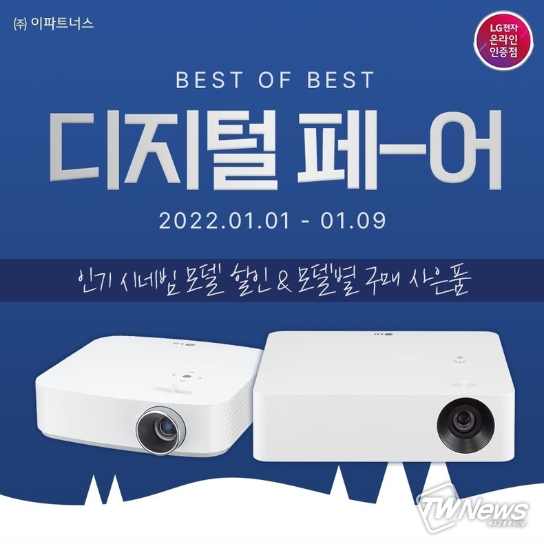 [제주교통복지신문 김지홍 기자] LG전자 공식 전문점 ‘이파트너스’가 LG시네빔의 주요 인기 모델에 대해 ‘티몬 디지털페어’를 통해 할인 및 사은품 증정 행사를 진행한다고 4일 밝혔다.