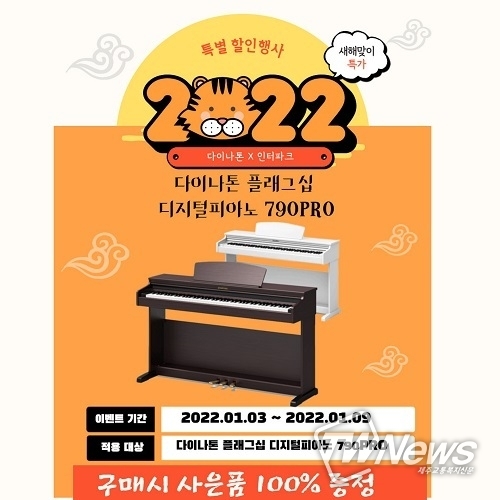 [제주교통복지신문 신혜정 기자] 국산 디지털피아노 전문브랜드 다이나톤이 오는 9일까지 인터파크에서 다이나톤의 플래그십 디지털피아노 790PRO의 새해맞이 특가이벤트를 진행할 방침이다.