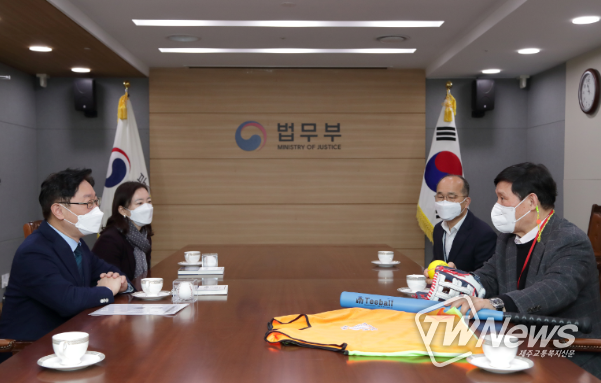 [제주교통복지신문 김대훈 기자] 법무부는 ’21년 1월 5일 오전 정부과천청사에서 한국야구위원회 총재고문 허구연 야구 해설위원을 초대, 소년원생을 위한 티볼세트 기증식을 가졌다.