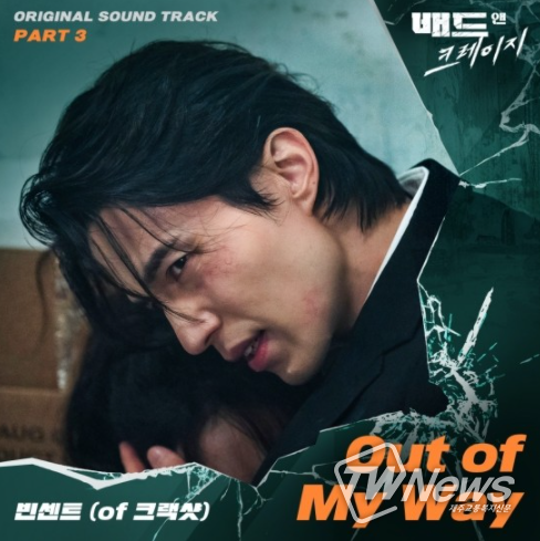 ‘배드 앤 크레이지’의 세 번째 OST ‘아웃 오브 마이 웨이’는 앞서 지난 1일 방영된 ‘배드 앤 크레이지’ 6회 엔딩에 삽입돼 화제가 된 바 있다. 빈센트의 파워풀한 목소리와 함께 강력한 에너지를 전하는 밴드 사운드가 시청자에게 강한 인상을 남겼다.
