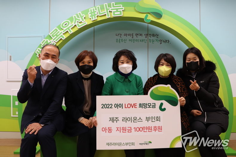[제주교통복지신문 김현석 기자] 제주 라이온스클럽 부인회(회장 윤순애)는 지난 7일 초록우산 어린이재단 제주지역본부(본부장 김희석)에 연말 아동 지원금 100만원을 기부했다.