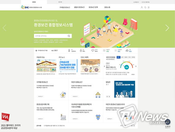 [제주교통복지신문 김대훈 기자] 환경부는 생활 속 환경유해인자, 환경성 질환 등 환경보건 정보를 종합해 제공하는 '환경보건종합정보시스템'을 1월 10일부터 공개한다.