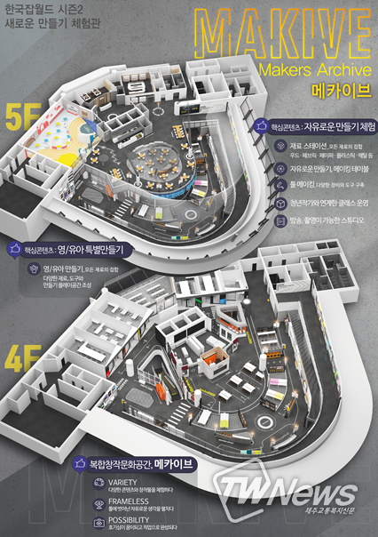 체험관 명칭은 메이킹(Making, 만들기)과 아카이브(Archive)의 조합형인 ‘메카이브(MAKIVE)’로 결정됐다. 만들기에 대한 모든 활동이 가능한 중심지라는 뜻을 담았다.