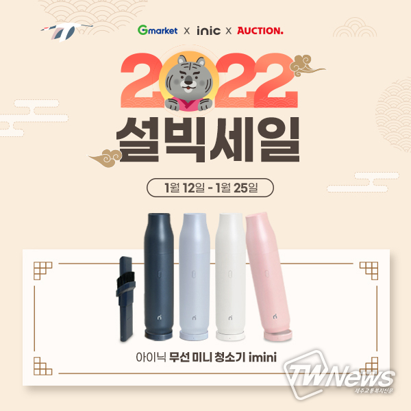 [제주교통복지신문 신혜정 기자] 국내 가전 브랜드 ㈜아이닉의 핸디형 무선청소기가 옥션·G마켓 주관 ‘2022 설빅세일’에 참여하여 해당 이벤트는 12~25일까지 진행된다.