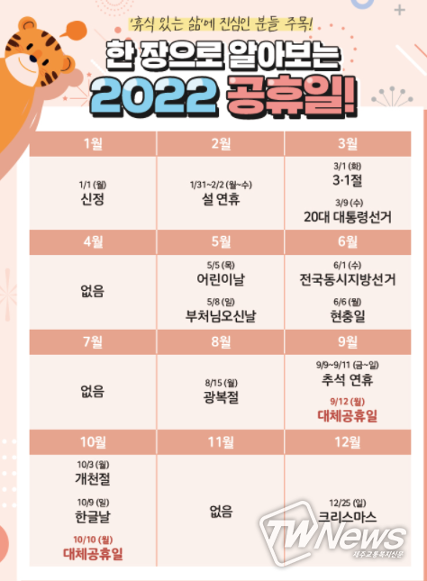 한 장으로 알아보는 2022 공휴일!