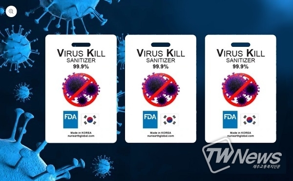 김태환 대표는 “바이러스킬 세니타이저는 특허청으로부터 항균 및 바이러스 살균 기능을 갖는 카드로 발명 특허 등록이 결정되어 1월 중 등록증이 교부될 예정”이라며 “휴대 시 한 달 이상 사용한 경우 차량이나 집 안 입구 등에 거치할 경우 효능이 3개월까지 지속된다”고 제조사 권장 사항을 소개했다.