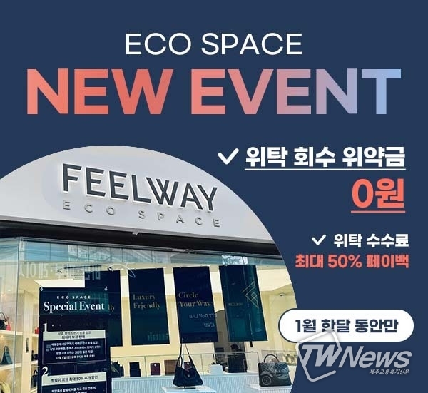 [제주교통복지신문 김현석 기자] 필웨이의 중고명품 위탁·매입 전문 매장인 에코 스페이스가 1월 한 달 동안 ‘위탁 회수 위약금 0원’ 이벤트를 진행한다고 15일 밝혔다.
