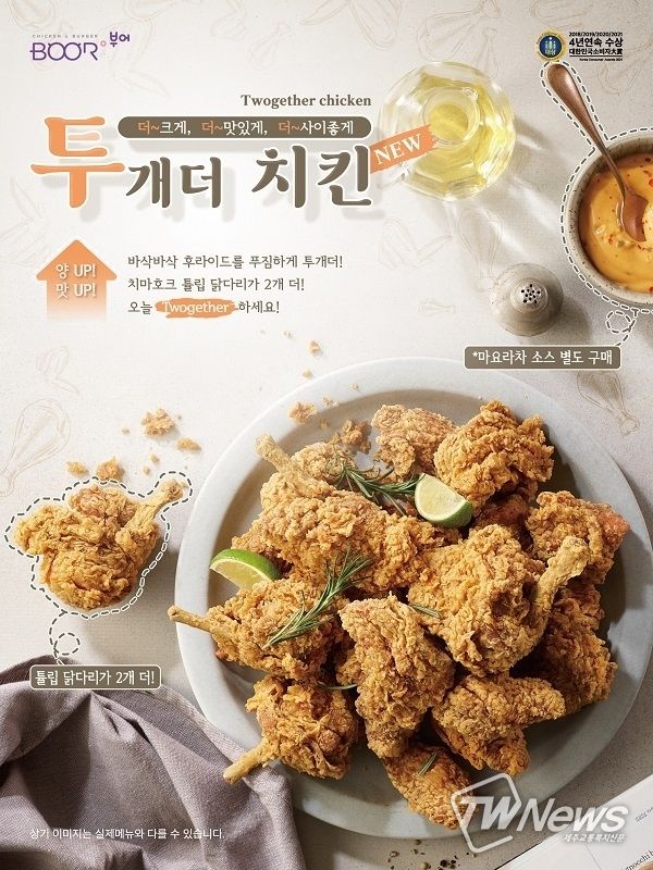 한편, ‘투개더치킨’과 버거 2종 신메뉴는 오는 21일부터 부어치킨 일부 매장을 통해 만날 수 있다.