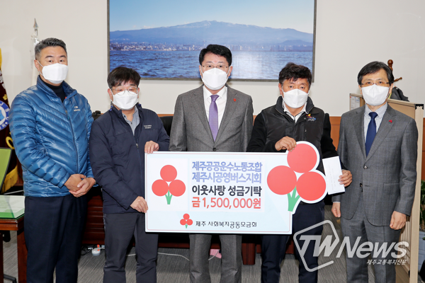 이날 전달식에는 안동우 제주시장과 제주시공영버스지회 정형수 지회장, 제주사회복지공동모금회 강지언 회장 등이 참석했다.