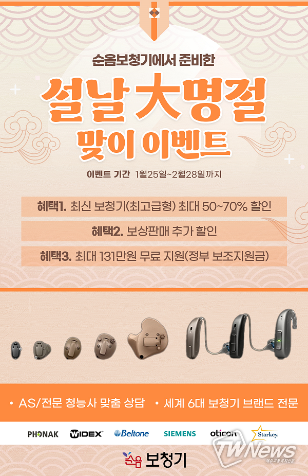 [제주교통복지신문 신혜정 기자] 종로 순음보청기는 민족의 대명절 설을 맞아 할인 행사를 진행한다고 21일 밝혔다.