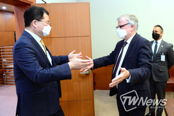 [제주교통복지신문 김대훈 기자] 최종건 외교부 제1차관은 1.21일 약 4년간의 한국 근무를 마치고 이임하는 사이먼 스미스(Simon Smith) 주한영국대사를 접견했다.