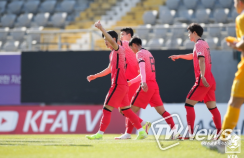 절반 이상 교체된 한국은 선수끼리 호흡을 맞출 시간이 필요했다. 이동준의 빠른 발을 활용한 돌파와 조영욱의 날카로운 뒷공간 침투가 간간이 나왔지만 골까지 연결되지는 못했다. 하지만 후반 추가시간 조영욱의 움직임이 결실을 맺었다.
