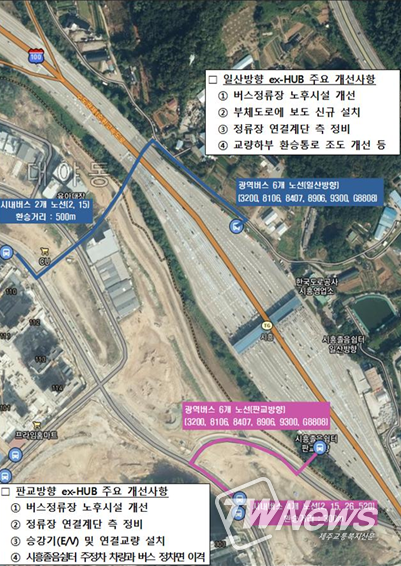 이에 따라 기존 환승정류장을 철거하고 정류장 안내기(BIS), 냉난방시설 등의 시설을 갖춘 스마트 환승정류장으로 새롭게 설치했으며, 고속도로 쉼터와 혼재되어 있던 환승정류장을 구조적으로 분리하고 진입로 정비, 엘리베이터 설치 등 접근시설도 정비하여 교통사고 예방과 이용시민들의 안전도 확보할 수 있게 됐다.