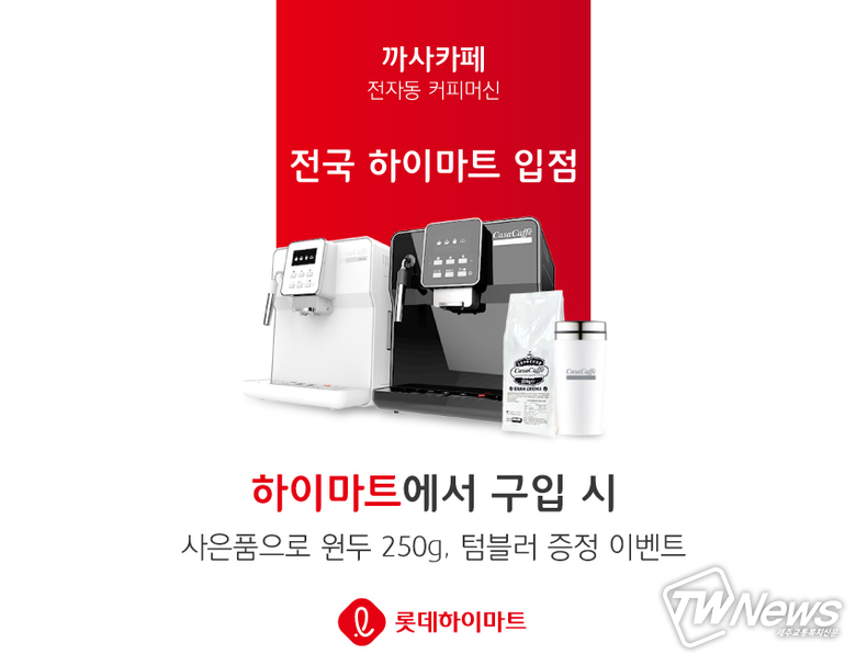 이에 까사카페는 전국 롯데하이마트 입점을 기념하여 이탈리아 고급 원두(250g)와 텀블러 증정 이벤트를 실시한다고 밝혔다. 커피머신 구매 시 이 두 증정품을 함께 받아볼 수 있다.