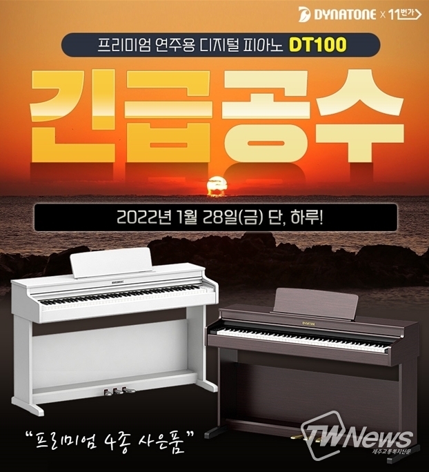 [제주교통복지신문 신혜정 기자] 디지털피아노 브랜드 다이나톤이 오는 28일 단 하루 11번가에서 민족 대명절 설을 맞이하여 프리미엄 디지털피아노 DT100의 특가할인 및 사은품 행사를 진행한다.