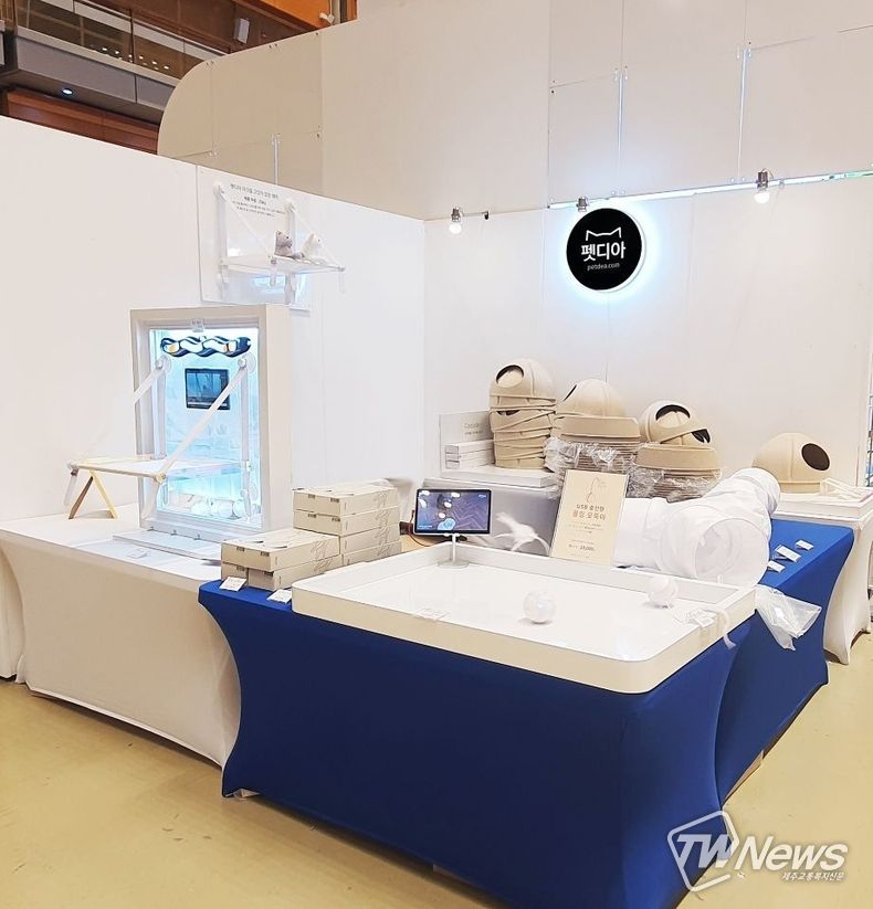 펫디아가 박람회에서 처음 선보인 화이트 고양이 창문 해먹은 따뜻하고 높은 곳을 좋아하는 고양이를 위한 창문 거치 고양이 해먹이다. 또한 고양이 터널은 종이 같은 바스락 원단 사용으로 고양이 집사들의 선호도가 높다.