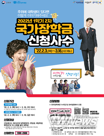 한편, 2022학년도 1학기 국가장학금 2차 신청ㆍ접수는 2월 3일부터 3월 16일까지 42일간 진행된다.